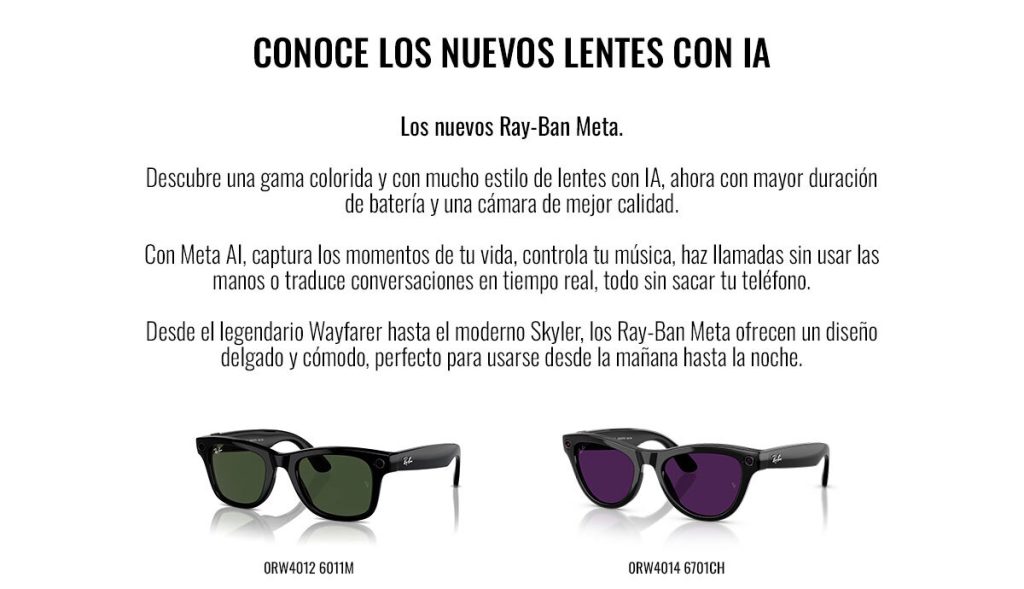 Descubre una gama colorida y con mucho estilo de lentes con IA, ahora con mayor duración de batería y una cámara de mejor calidad.