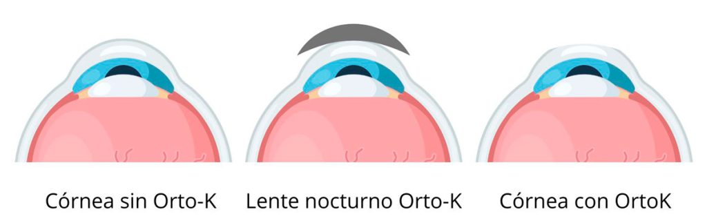 La ortoqueratología es comúnmente conocida como Orto-K y consiste en la adaptación de lentes de contacto especializadas, diseñadas para ser utilizadas durante la noche mientras el paciente duerme. (1) Estas lentes ejercen una presión suave y controlada sobre la córnea, con el fin de remodelar temporalmente su curvatura. El propósito de este proceso es permitir una visión clara y nítida durante el día, en un principio puede requerir complementarse con usar gafas o lentes de contacto convencionales, posteriormente es posible que desaparezca esta necesidad.