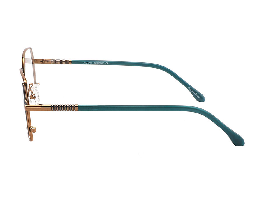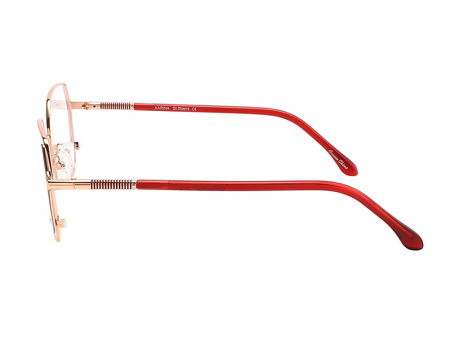 El modelo KARINA destaca por su atractivo audaz pero refinado. Un motivo decorativo adorna las varillas, agregando un toque extra de elegancia. La cuidadosa coordinación de colores asegura que las varillas complementen el cuerpo principal de la montura, realzando su impacto visual general.